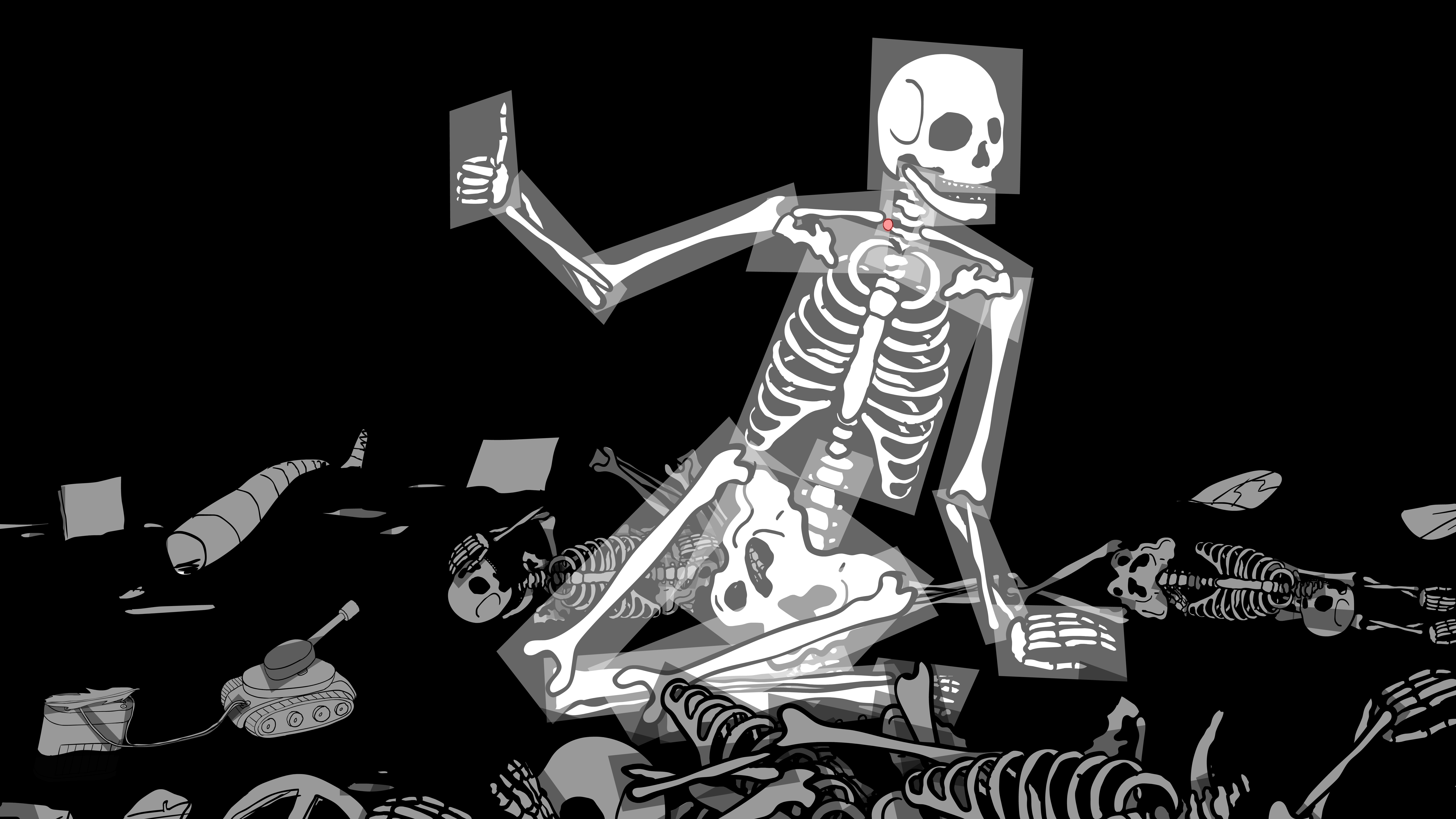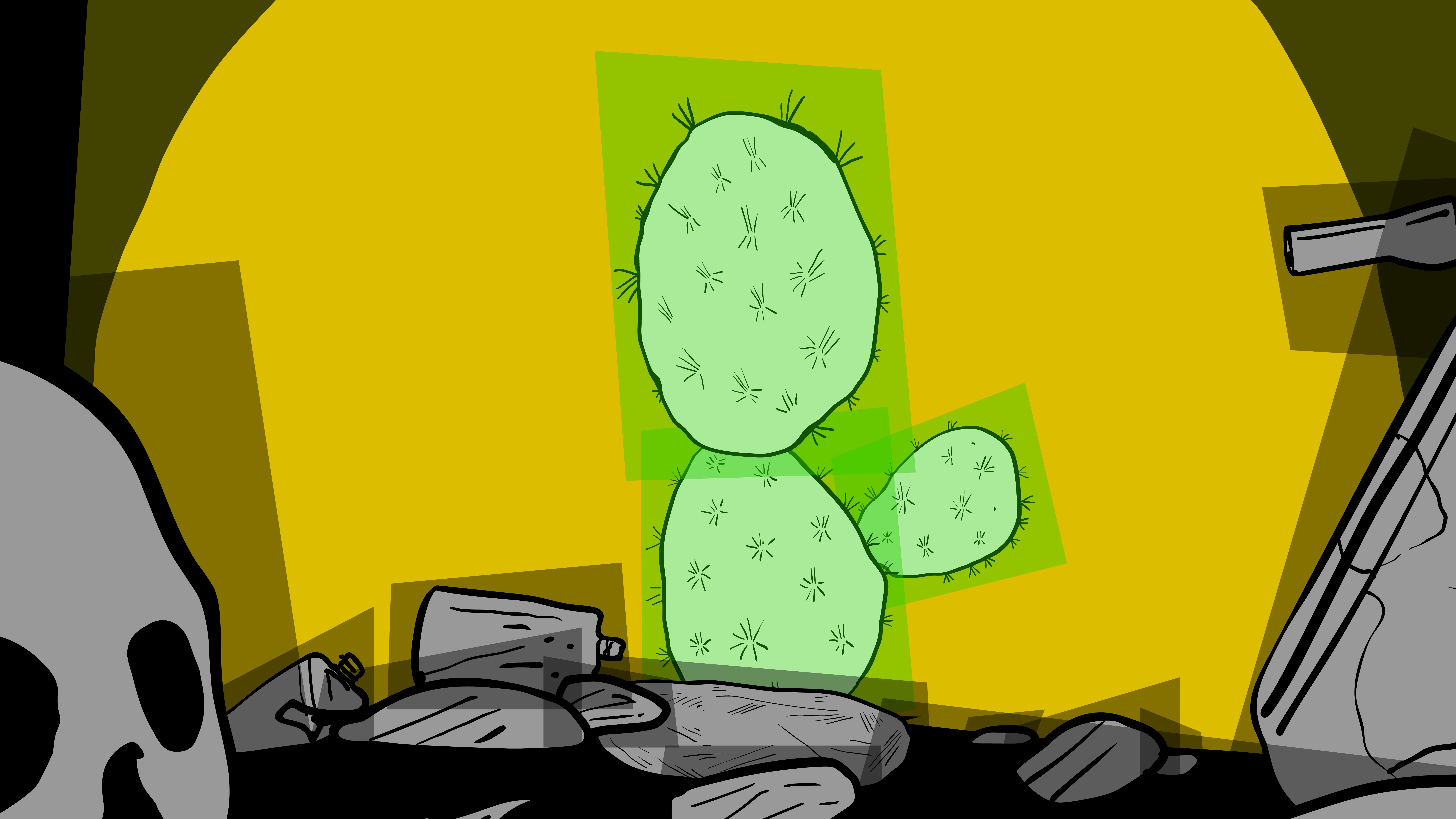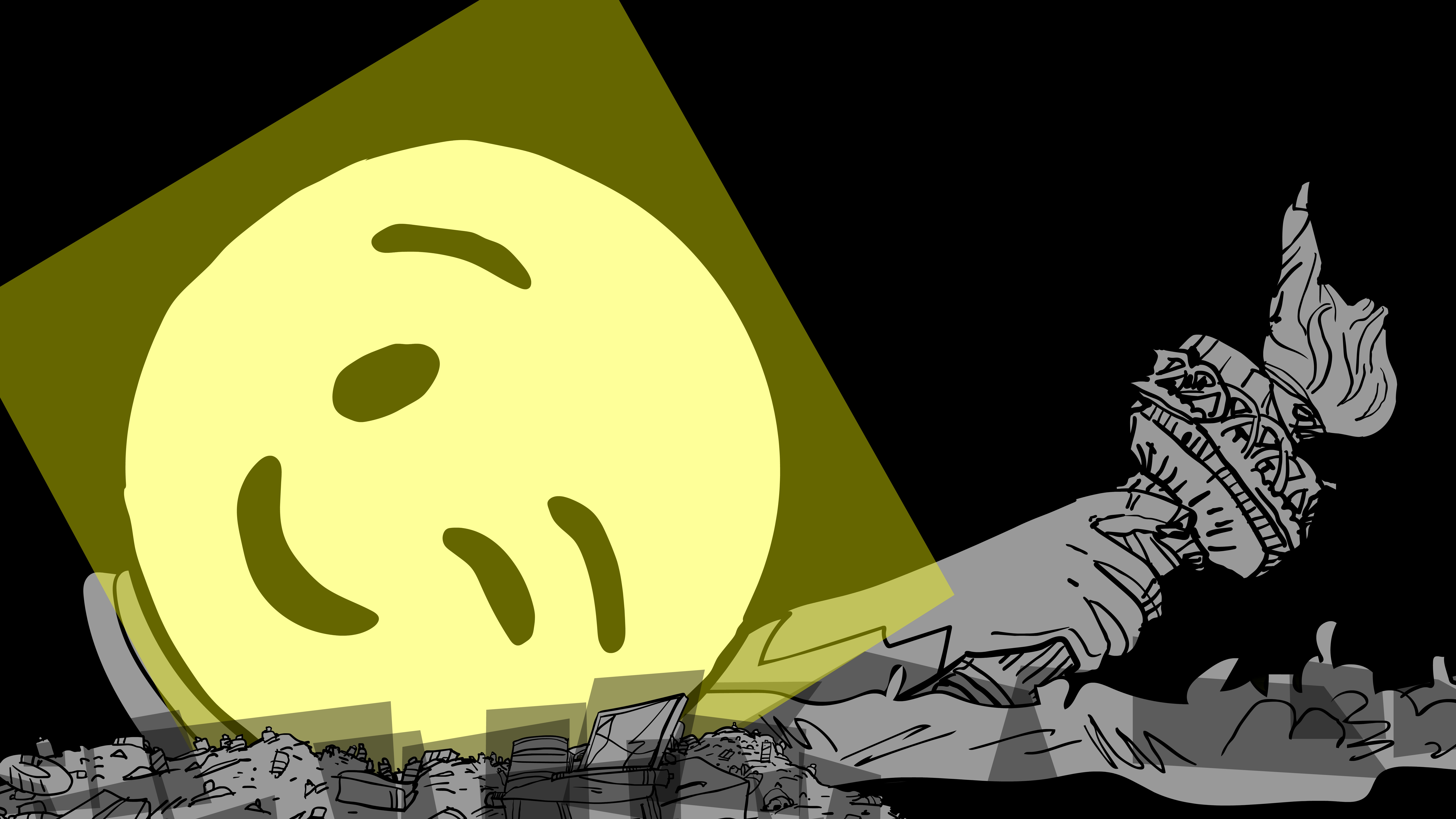 The world passes by, broken. The houses, the environment, the infrastructure, and the people are seen on a post-apocalyptic journey that is still very much occurring in the present. Signs with phrases such as “Back to normal” and “Everything used to be better” are propped up by collapsed skeletons. That second sign in particular reminds us how hollow and obsolete these platitudes have always been, how ahistorical and undifferentiated, and how superstitious (as Ernst Bloch wrote in his masterwork The Principle of Hope in the chapter entitled “None of These Newfangled Things Are Any Good”). Leopold Maurer’s animated film CATASTROPHE then continues with the yellow sun rising and initiating a Rube Goldberg-like machine effect that progresses in turn from a cactus to the portrait of the sitting U.S. president to a piggy bank, and eventually, a rubber ducky that provides the impetus for revolution.