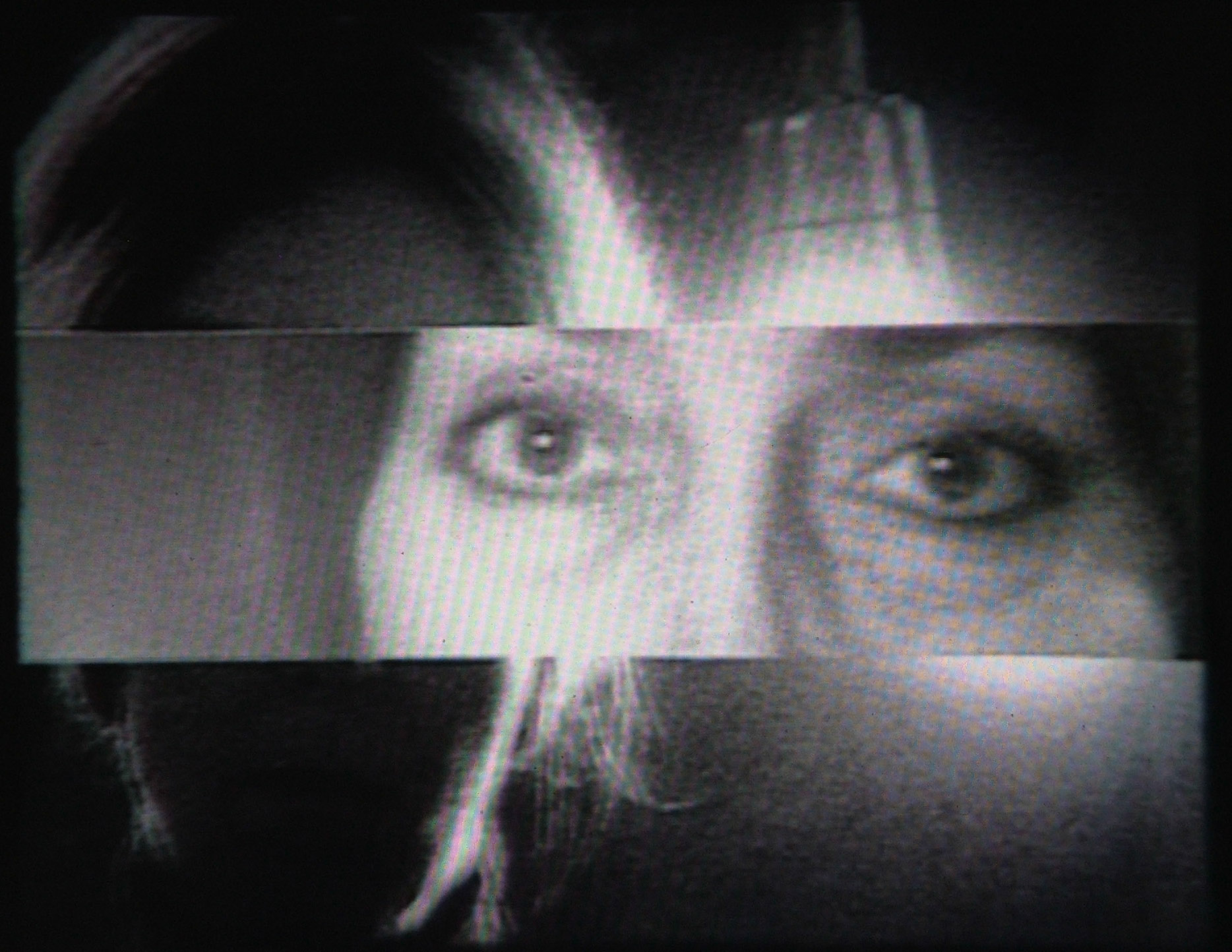 The image, divided into three horizontal fields, shows three separately recorded 1-second camera swings made from the same subject, copied mechanically together afterwards. The sound corresponds to the camera swings by improvised vocal glissandi. An attempt to expand space producing changing montages of the elements, inducing it automatically by shifts in time. (D.M.)