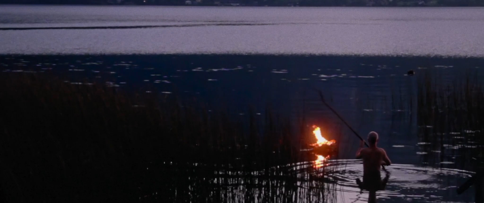 In the blue twilight, on the shore of a quiet lake, flickering fire rises from the water. Behind it stands the abandoned bathhouse, a silent witness to a lost community. With clattering wooden slats, a dance begins, a first, hesitant step back into the world before the darkness of the night forest swallows everything.
