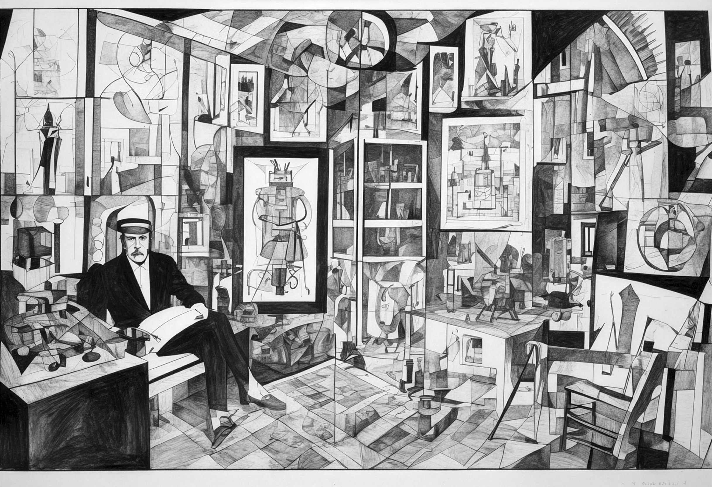 AI tools are commonly accused of merely "parroting" what they have learned during their extensive training. Dominik Hruza’s Das Pool Paradoxon (The Pool Paradox) proves otherwise, as it interweaves the use of such tools in a skillful way. Hruza employs a wide variety of generative tools to give the construct of film a blueprint that is as complex as it is strikingly simple, through cross-media concatenation of signs. First we have an absurd literary text, riddled with all sorts of associative maneuvers and sleights of hand, loosely based on the prose texts (processed by AI!) written by the Dadaist Kurt Schwitters in the first half of the 20th century. It is Schwitters’ voice that narrates this grotesque, endless metamorphosis, made possible by a text-to-speech program. For the visual level, Hruza fed his own drawings to an AI program, resulting in animations which – referencing Schwitters’ collage technique – together form a continually evolving graphic novel. Flowing tableaux made up of intricate graphic elements transition into figurative condensations, during which (remaining) reality increasingly dissolves into a pool of absurdities. People become objects, while objects develop a life of their own, and everything – a factory where sentences are repaired, a library of edible books, a restaurant serving “backwards” cooked food – appears ever more paradoxical. In this way, a multimedia narrative cosmos is realized, without being reducible to any clearly comprehensible level of meaning. The pool from which this kind of generativity draws may be finite. However, the orchestrated chaos that emerges from it shimmers in infinitely many facets. (Christian Höller)